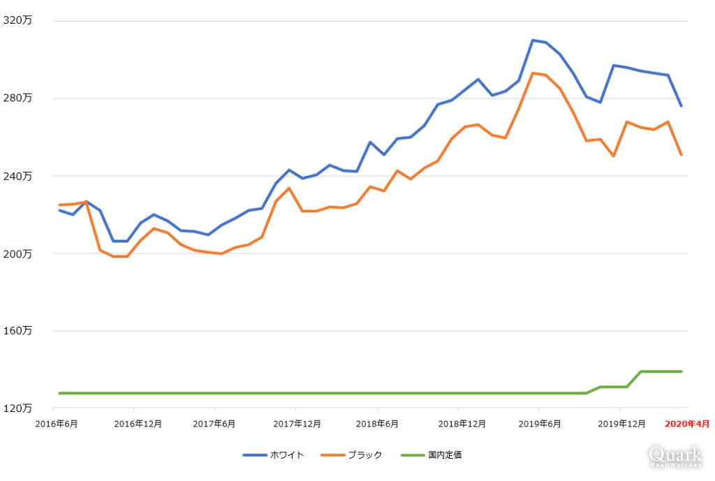 昨年2019年から今年2020年にかけて、ロレックスなどの高級時計は定価改定が行われ、実質的に『値上げ』されましたが、実勢相場は特に変動していません。